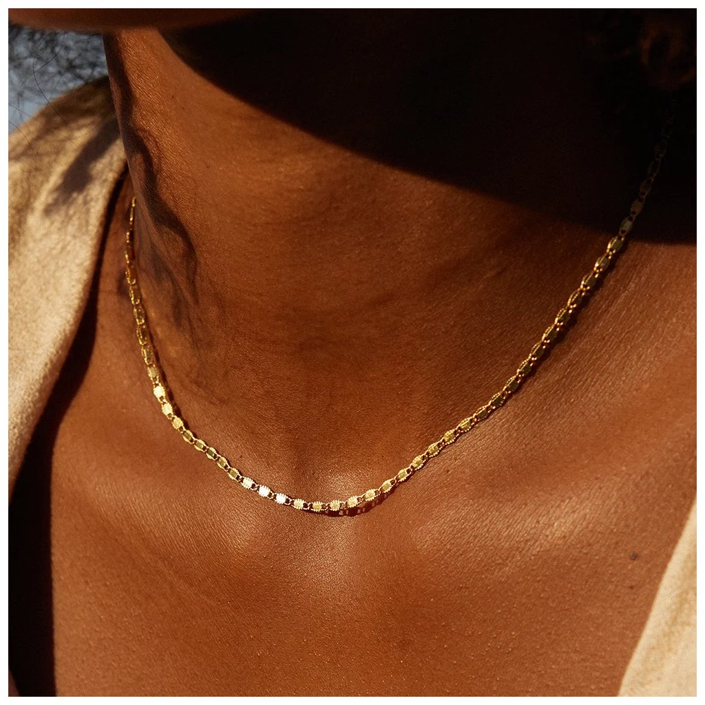 Jemný a originální choker upoutá svým neobvyklým designem. Díky svému tvaru krásně odráží světlo a dodává šperku zářivý efekt. Je elegantní volbou pro každodenní nošení, ale i stylovým doplňkem pro večerní outfit.