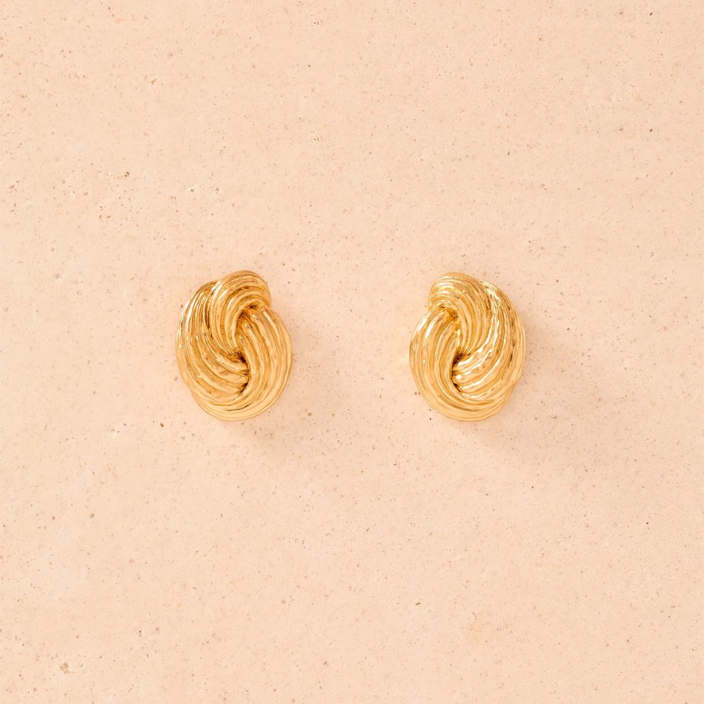 Výrazné, elegantní a s nadčasovým šarmem. Náušnice ve tvaru jemně spleteného uzlu jsou dokonalým doplňkem pro každou příležitost. Jejich plastický tvar a zlatý lesk přitahují pozornost, aniž by působily příliš nápadně. Hodí se k formálnímu outfitu i jednoduchému bílému tričku.