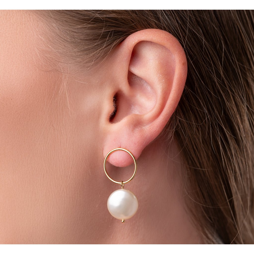 Elegantní náušnice s říčními perlami zaujmou svým sofistikovaným a moderním designem. Jemná kombinace zlatého kruhu a výrazné perly vytváří nadčasový kousek, který oživí každý outfit.