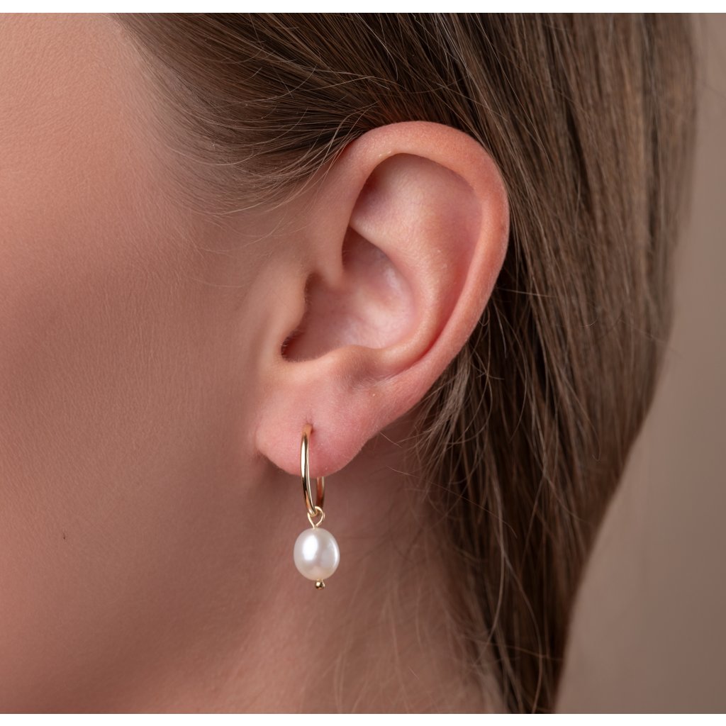 Elegantní náušnice s jemnými perlami jsou ztělesněním nadčasové ženskosti. Minimalistické kroužky doplňují decentní perly, které se při nošení jemně pohupují a dodávají šperku přirozený šarm.